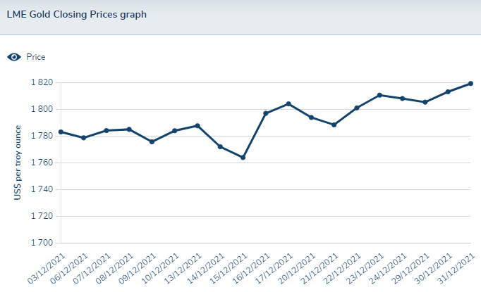 W ostatnim miesiącu ubiegłego roku cena złota wzrosła. Na początku miesiąca złoto kosztowało około 1780 dolarów za uncję, a pod koniec miesiąca było to około 1820 dolarów za uncję. Średnio cena złota wzrosła około 100 dolarów za uncję. Oceniając taką zmianę ceny złota można stwierdzić, że ceny skupu złomu złota odpowiednio wzrosły. Według scraprice.com, 1 stycznia 2022 r. złom złota po najwyższej cenie mógł być sprzedawany w Niemczech.